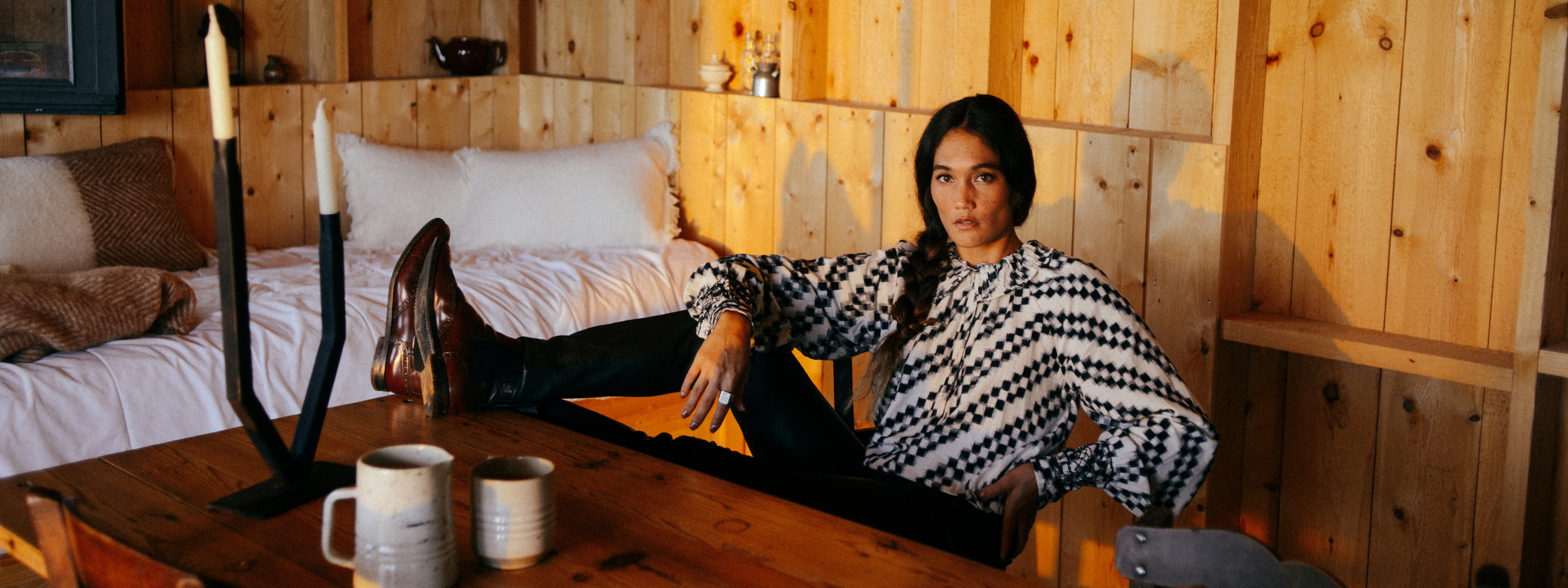 This season I revisit some VdeVinster staples — Tie & Dye, Ikat and Tartan — in an easy-going and light-hearted way. Drawing inspiration from my youth in the 80s, the collection incorporates sun-kissed colors and bold patterns alongside unexpected elements like metallic paillettes, cowry shells, and contrasting appliqués.
